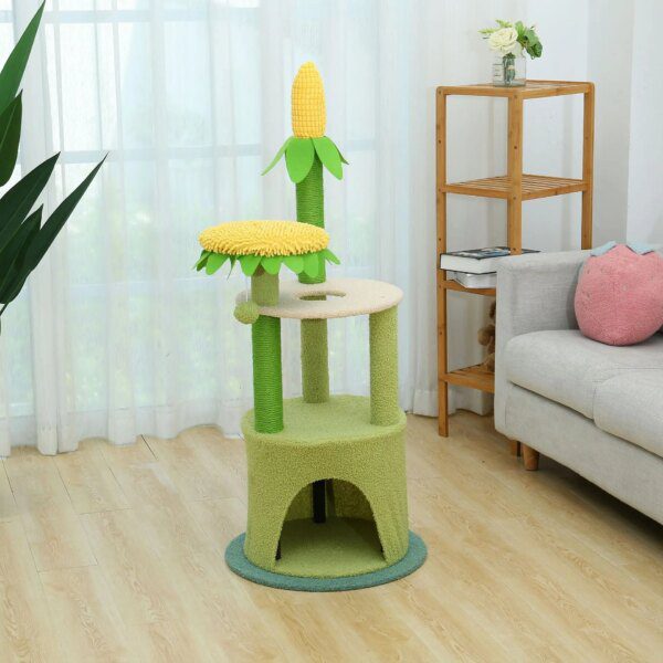 Arbre à chat multifonctionnel strictement condo, conception de maïs automatisée, maison de chaton, grattoir pour chat