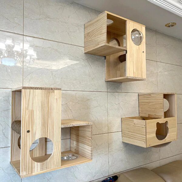 arbre a chat Cadre d’escalade pour chat en bois massif, fournitures pour Villa, maison, jouets, litière