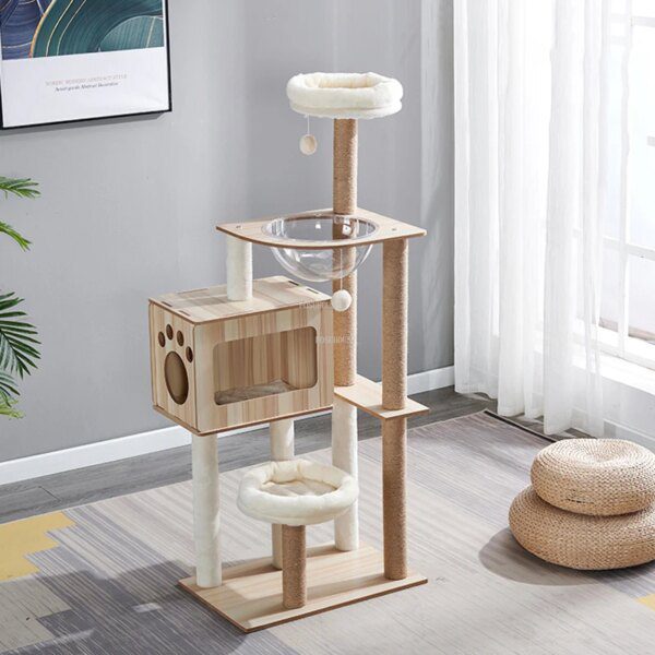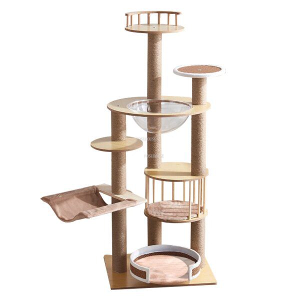 arbre a chat Grattoir universel pour chat en bois massif, quatre saisons, accessoires pour chats