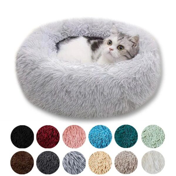 Coussin chat en polymères – Lit rond en peluche longue, niche chaude