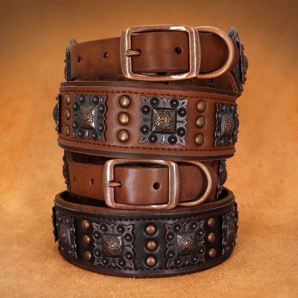 Collier de Luxe en Cuir Véritable pour Chiens Moyens & Grands – Prestance