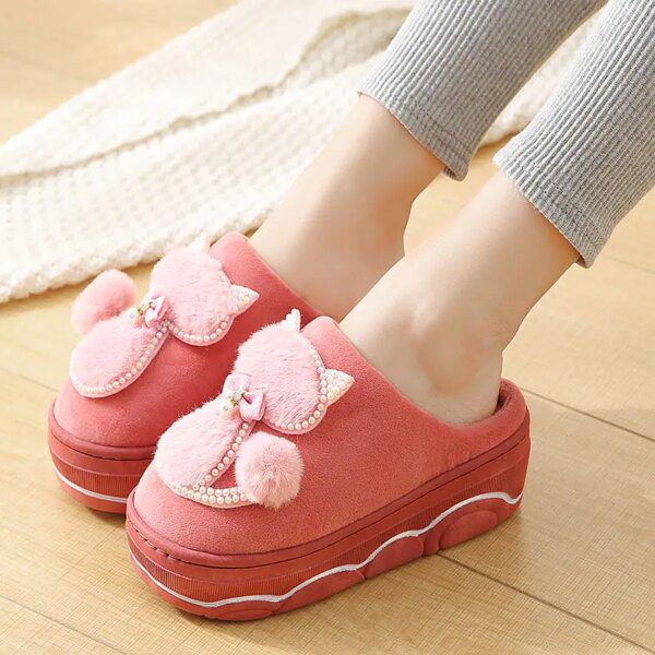 chaussons chat en strass à plateforme épaisse pour femmes