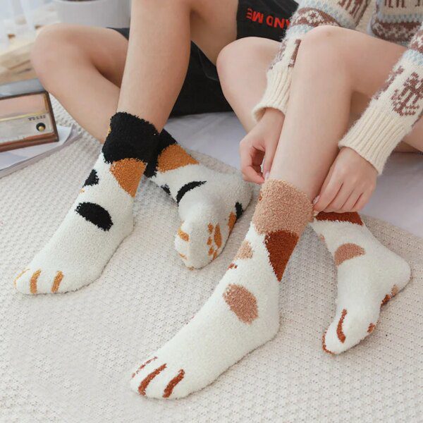 chaussette chat Kawaii en velours doux pour femme, lot de 3 paires, motif patte de chat