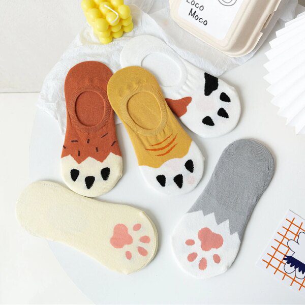 chaussette chat invisibles pour femmes, 3/5 paires/lot, dessin animé