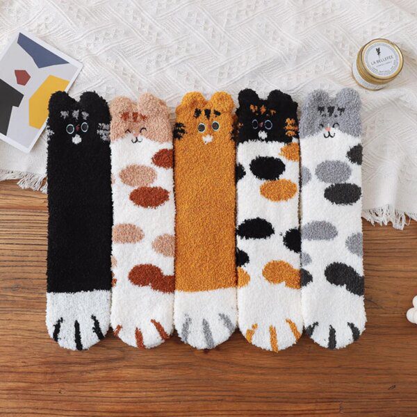 chaussette chat molletonnées en velours et corail pour femme