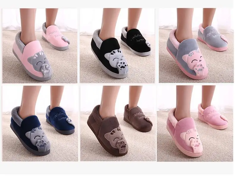 Pantoufles d’intérieur antidérapantes pour hommes et femmes, chaussures de maison avec chat de dessin animé, douces pour l’hiver, chaudes, pour chambre à coucher, grande taille